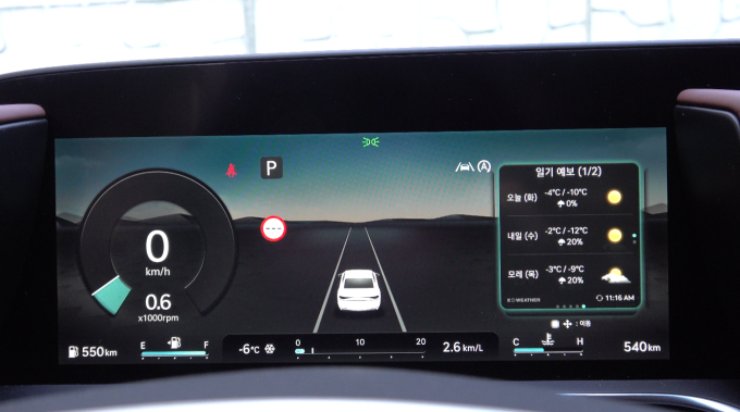 대형 세단이라 묵직한 주행 감각을 기대했는데 예상외로 가볍다. 노면을 꾹꾹 누른다는 느낌보단 노면 위를 부유하는 느낌이다. 노면 충격이나 소음을 굉장히 잘 걸러낸다. 특히 스프링이 부드럽게 움직이는 댐퍼가 훌륭하다. 도로의 맨홀 뚜껑이나 도로 사이를 잇는 이음새를 넘어가는 감각이 굉장히 매끄럽다. 요철 구간을 지날 때도 마찬가지다. 노면에서 발생하는 충격이 타이어와 서스펜션, 시트에서 흡수해 운전자에게 전달되는 양이 거의 없다. 노면 소음을 걸러내는 것도 일품이다. 국산차에서 이렇게 편하고 안락한 차는 없었다.