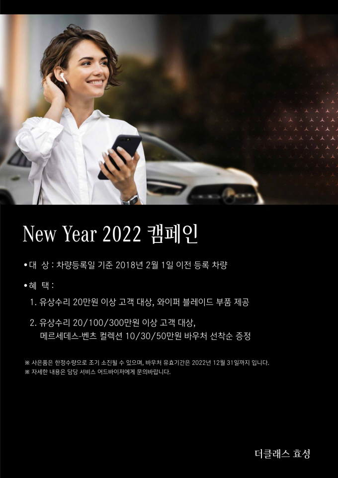더클래스 효성 관계자는 “2022년 한 해에도 더클래스 효성과 함께 편안하고 안전한 드라이빙 라이프를 누리실 수 있도록 돕고자 서비스 캠페인을 진행하게 됐다”며 “올해에도 고객을 위한 양질의 서비스를 제공할 수 있도록 만전을 기하겠다”고 말했다.