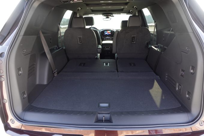 쉐보레 트래버스는 북미 시장에서 준대형 SUV로 취급 받지만 기준이 다른 국내 시장에선 대형 SUV로 구분된다. 대형 SUV답게 크기가 압권이다. 길이, 너비, 높이는 5230, 1780, 2000mm고 휠베이스도 3m가 넘는다. 국내에서 가장 잘 팔리는 대형 SUV 현대 팰리세이드보다 길이는 220mm, 휠베이스는 1730mm 긴 크기다. 그만큼 공간도 넉넉하다. 트래버스의 실내 공간은 광활할 정도다. 룸미러로 뒤를 본 기분이 굉장히 묘하다. 이정도로 깊은 SUV를 탄 적이 있었나 싶다.