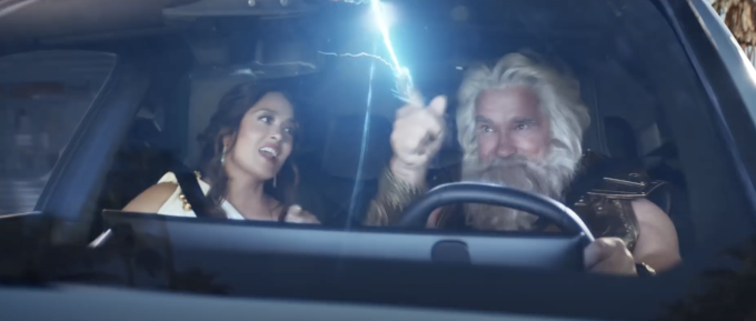 BMW 광고에는 그리스 로마 신화의 제우스와 헤라가 등장했다. 특히 제우스 역할은 할리우드 배우 아놀드 슈워제네거가 맡아 화제다. 헤라와 함께 은퇴한 제우스는 편안한 노후생활을 즐기려고 하지만 전기가 필요한 사람들의 부탁으로 인해 계속해서 번개를 만든다. 그러던 중 헤라가 순수 전기차 iX를 가져와 더 이상 번개를 만들 필요 없이 즐겁게 드라이빙 하는 모습을 담았다.