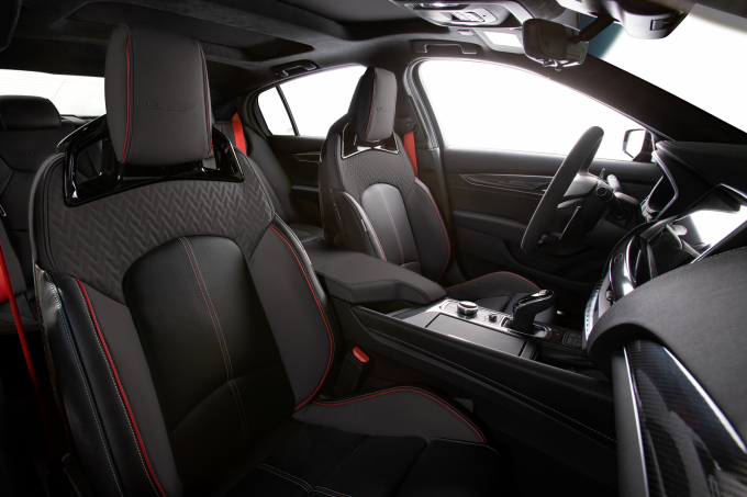 실내에는 고유의 시리얼 넘버가 각인된 퍼포먼스 스티어링 휠을 적용했으며 카본 파이버 트림과 레드 센터 스트라이프 포인트를 넣었다. 특히 레드 센터 스트라이프로 스트어링 휠의 중앙 지점을 운전자가 손쉽게 확인할 수 있게 했다. 또 V시리즈의 블랙윙 전용 퍼포먼스 버킷 시트와 V 로고 및 토치 레드 색상의 시트벨트 등 디자인 포인트가 들어갔다.