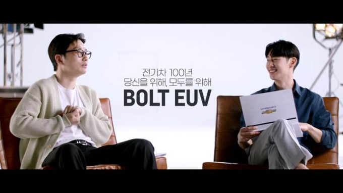 이번 광고에는 그동안 다양한 작품을 통해 진지하면서도 유머러스하고 친근한 이미지를 보여준 배우 이제훈과 이동휘가 출연해 차량의 특성에 대한 각 배우의 성격을 대변하는 2편의 에피소드를 담았다. 특히 촬영장에서 만난 꼼꼼한 성격의 배우 이제훈과 다재다능한 배우 이동휘가 바라본 볼트EUV의 특징과 장점을 자연스러운 대화를 통해 위트 있게 전달했다.