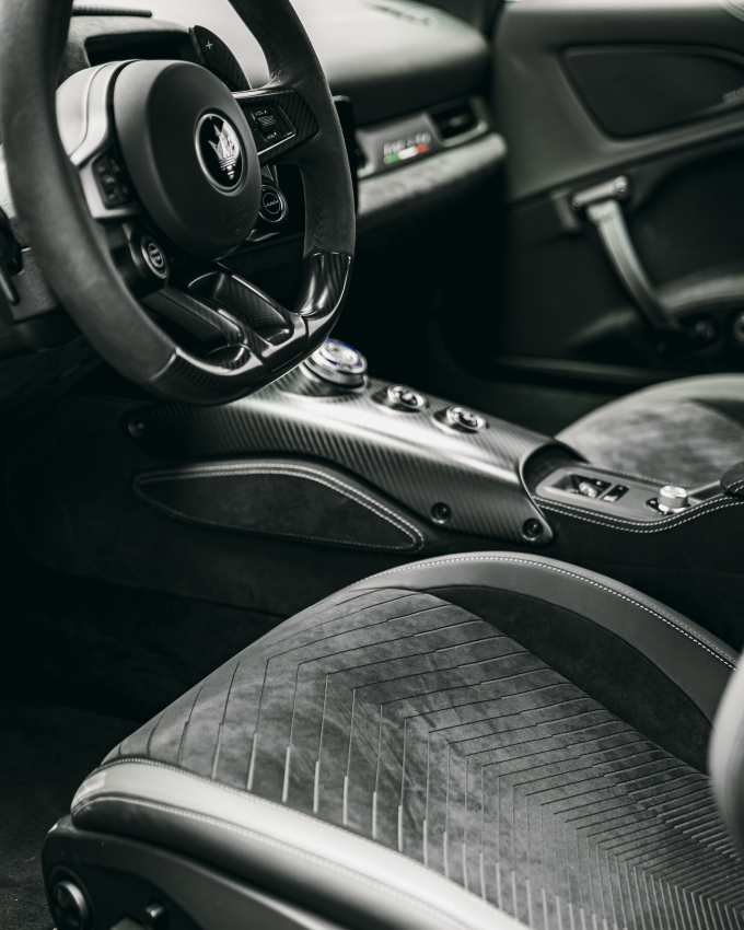 특히 시각적 효과를 극대화한 레이저 천공 패턴이 가공된 시트의 중앙 부분은 후면의 블랙 컬러 알칸타라와 대비를 이룬다. 블루와 메탈릭 그레이 컬러가 후면 옵션으로 제공되며 탄(tan) 컬러 패턴에 메탈릭 그레이 후면 조합도 선택할 수 있다.
