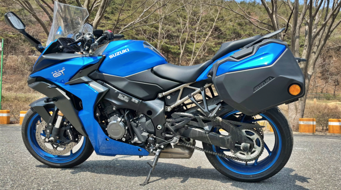 그러나 이런 요소들과 관계없이 GSX-S1000GT는 한 눈에 봐도 시선을 사로잡는다. 그만큼 디자인이 멋지고 개성 넘친다. 스즈키를 상징하는 파란 차체에 순정 옵션인 사이드 케이스 한 쌍이 더해진 GSX-S1000GT의 존재감은 그야말로 차고 넘친다. 처음부터 사이드 케이스 장착을 염두에 둔 설계 때문에 오히려 케이스가 없으면 허전해 보이기까지 한다. 한 쪽의 용량이 동급 최대 수준인 36리터임에도 불구하고 위화감이 없다.