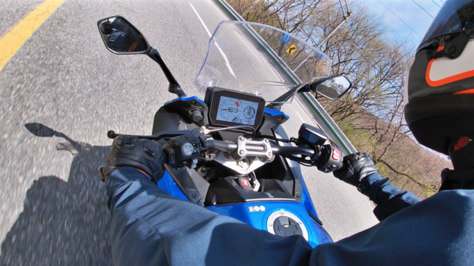 이 때 투어러로서 GSX-S1000GT의 특징이 잘 드러난다. 장거리 투어 시 바람 저항으로 인한 몸의 피로도를 줄여주는 공기역학적인 설계가 대표적이다. 그중 하나가 윈드 스크린이다. 시승을 한 GSX-S1000GT는 순정 옵션인 투어링 스크린이 적용돼 있다. 기본 스크린보다 높게 솟았음에도 디자인을 해치지 않고 무엇보다 고속 주행 시 헬멧 위로 바람을 가볍게 흘려 보낼 만큼 방풍 성능이 뛰어나다.