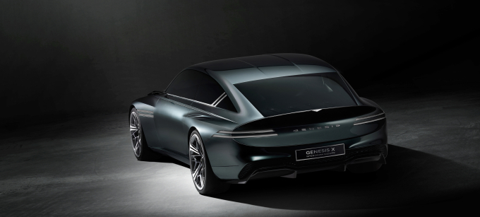 콘셉트 모델을 위에서 내려다봤을 때 가장 눈에 띄는 디자인 요소는 모래시계 실루엣을 적용한 스타일링이다. 굴곡이 들어간 휠 아치 부분이 마치 근육이 있는 듯한 이미지를 연출한다. 또 하나의 대표적인 제네시스 디자인 특징 중 하나인 파라볼릭 라인은 후드에서 시작해 후면부 끝까지 이어지며 클래식카를 연상케 하는 원만한 곡선을 이룬다.