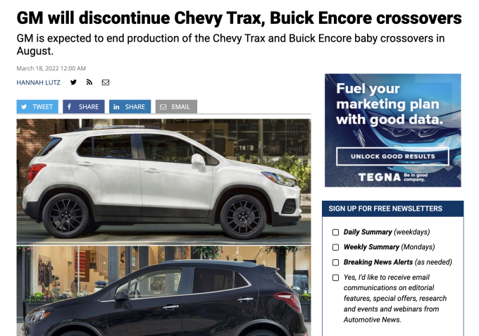 18일 다수의 외신에 따르면 한국지엠 부평 공장에서 생산하던 트랙스는 2022년식 모델까지만 생산한다. 이후는 동급 차를 대체할 완전 신차를 투입한다는 전략이다. 일부 외신은 이를 두고 새로운 전기차의 투입이 유력하다고 보고 있지만 GM은 차기 차종에 대해서는 확답을 피했다.