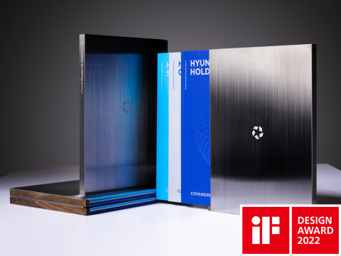 브로슈어 패키지는 그룹의 모태인 자동차 부품산업을 상징하는 메탈 계열의 알루미늄 스틸로 제작해 그룹의 역사와 미래의 연결성을 담았다. 사업의 특징을 정확히 보여주는 현장감 있는 사진과 그룹의 심볼마크 색상인 남색, 하늘색, 회색을 사용해 기업 정체성 및 통일성을 반영했다.