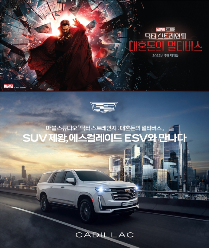 먼저 이번 콜라보레이션 캠페인의 일환으로 에스컬레이드 ESV와 ‘닥터 스트레인지: 대혼돈의 멀티버스’에 등장하는 히어로가 함께하는 스페셜 영상을 제작한다. 영상에서는 에스컬레이드 ESV의 압도적 스케일을 영화 속 히어로들의 눈으로 바라보는 특별한 경험이 표현되며 캐딜락 공식 홈페이지 및 SNS를 통해 5월 초에 공개될 예정이다.