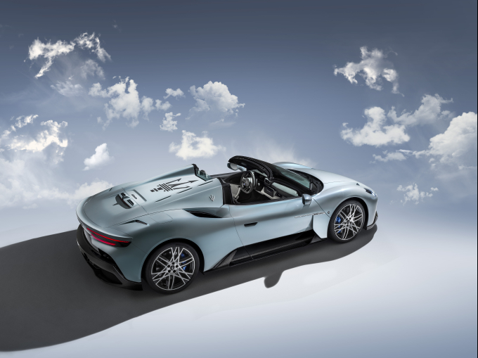 신차의 디자인은 이탈리아 토리노의 센트로 스틸 마세라티에서 개발했다. 신차는 우아하면서도 스포티한 외관을 갖췄다. 여기에 MC20과 같은 버터플라이 도어를 장착해 실내에 쉽게 출입할 수 있게 했으며 탄소 섬유로 된 운전석과 공기역학성, 프론트 휠 등을 강조했다.
