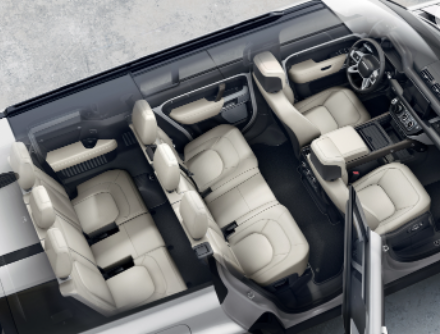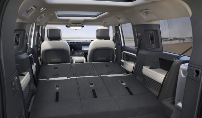 각 열에는 자체 환기 시스템을 갖췄으며 열선내장 시트와 패딩 처리된 팔걸이, USB-C 등이 3열석에도 들어갔다. 또 2열 시트를 앞으로 폴딩할 수 있고 움직일 수 있어 3열에 쉽게 탑승할 수 있다. 물건을 실을 때는 실내 버튼으로 디펜더의 전자식 에어 서스펜션을 낮출 수 있도록 했다.