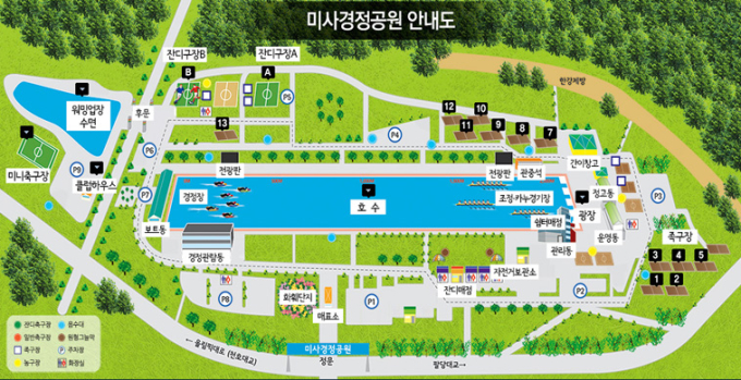 미사 경정공원은 P1부터 P8까지 많은 주차장을 갖추고 있다. 이 중 차크닉을 위한 베스트 장소는 P4. 한국관광공사에 따르면 P4에 주차 후 피크닉을 하면 정면에 인공호수, 자전거 길이 보여 경치도 만끽 할 수 있다고 한다. 이 곳에서는 쉽게 캠핑의자와 테이블을 찾아볼 수 있지만 텐트나 그늘막은 금지된다. 주말에는 피크닉을 즐기려는 사람들이 모여든다고 하니 아침 일찍 서두르는 것을 추천한다.