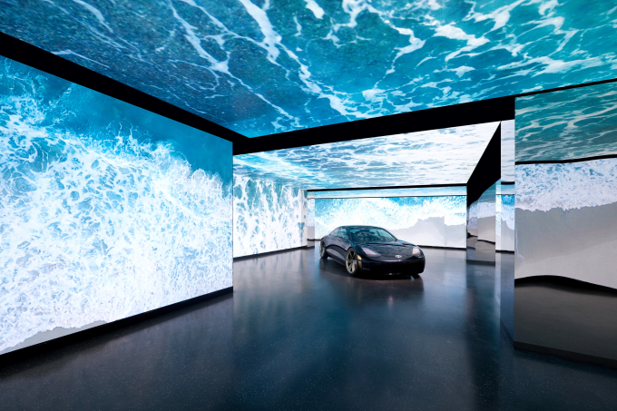 메인 전시 공간에는 현대자동차 EV 콘셉트카 '프로페시를 중앙에 전시하고 벽면부터 천장까지 스튜디오 전체를 둘러싼 LED 미디어 월(Media Wall)을 통해 현대차의 '클린 모빌리티' 비전 영상 등 다양한 미디어 콘텐츠를 체험해 볼 수 있도록 했다.