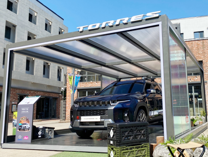또 제주시 조천읍에 위치한 유럽풍 감성 디저트카페 자드부팡에서도 8월 31일까지 오프로드 감성을 극대화한 튜닝된 토레스가 자드부팡 내 ‘토레스 스페셜 개러지’에 전시된다. 전시된 차량에는 루프 캐리어, 리어 래더, 리어 스페어타이어 랙, 불바 등이 장착되었으며, 인치업 튜닝으로 오프로드 감성을 극대화했다.