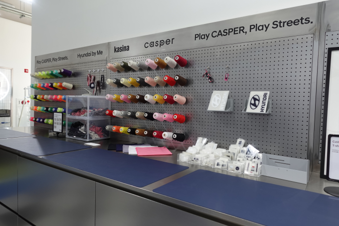 전시장 안쪽에는 MZ세대의 취향을 저격할 다양한 체험 공간이 들어섰다. 캐스퍼의 사진을 찍은 후 해시태그와 함께 올리면 나만의 티셔츠를 제작해볼 수 있다. 각양각색 열전사 스티커를 흰색 또는 검은색 티셔츠에 붙이고 열을 가하면 세상에 하나뿐인 굿즈가 탄생한다. 이 외에도 카사나와 콜라보 한 캐스퍼 전용 그릴 뱃지를 만들 수 있으며 타투 등도 체험할 수 있다.
