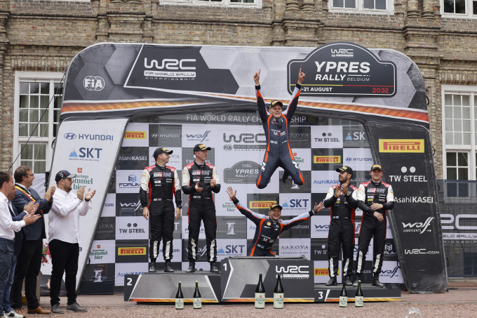 가장 먼저 결승선을 통과한 선수는 'i20 N Rally1 하이브리드' 경주차로 출전한 오트 타낙으로 지난해 벨기에 랠리에서의 주행 경험을 바탕으로 경기 초반부터 상위권을 유지하며 팀을 승리로 이끌었다. 특히 오트 타낙은 올 시즌 이탈리아, 핀란드 랠리에서의 기세를 몰아 벨기에 랠리에서도 우승을 차지하며 드라이버 종합 순위 2위를 지켰다.