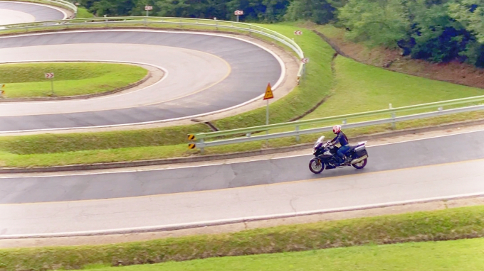 물론, 레인·로드·다이내믹 등 주행 모드에 따라 감쇠력이 바뀐다. 다만 기본적으로 K 1600 GT의 서스펜션은 안락함을 지향한다. 때문에 로드 모드에서 시골길의 크고 작은 과속방지턱과 둔덕을 물 흐르듯 넘을 수 있다. 다이내믹 모드에서는 조금 더 단단한 느낌이지만 그럼에도 안락함이라는 특성을 포기하지 않는다.