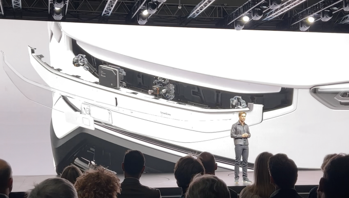폴스타3의 전면부에는 센서들을 모은 ‘센서 클러스터 스마트존’을 마련해 레이더를 포함한 각종 센서를 장착했다. 또, 내년 2분기에는 룸미러 상단 천정 외부에 라이더 센서를 장착해 레벨3의 자율주행을 가능하게 하는 기술도 적용한다.