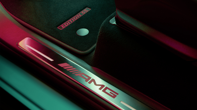 뿐만 아니라 다이나미카 마이크로 파이버 소재 기반의 AMG 퍼포먼스 스티어링 휠에도 'AMG'와 '55'가 각인돼 한정판 모델의 특별함을 더했으며, 고급 벨루어 소재의 블랙 컬러 AMG 에디션 55 스페셜 플로어 매트는 레드 컬러의 스티칭 및 ‘에디션 55’ 레터링으로 장식했다.