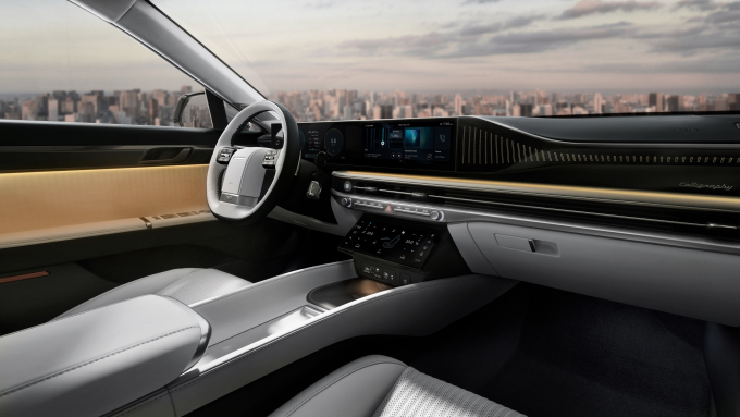 실내는 전면에 12.3인치 대화면 클러스터와 내비게이션을 일체형으로 통합한 디스플레이를 장착했다. 이는 중앙 하단에 위치한 풀터치 10.25인치 대화면 통합 공조 콘트롤러와 조화를 이룬다. 컬럼타입 전자식 변속 레버는 스티어링 휠로 이동했다. 이는 변속 조작 방향과 구동 방향을 일치시켜 직관적인 조작이 가능하며, 이로 인해 콘솔부는 한층 여유로워졌다.