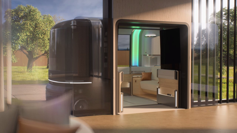 영상 속 사람들은 건물에 부착된 모빌리티를 통해 외부에 나가지 않고 양쪽을 자유롭게 오간다. 건물에서 생활할 때도 모빌리티 공간은 물론 공조 시스템과 엔터테인먼트 시스템까지, 차량을 마치 집과 사무실 속 전자기기처럼 활용한다.