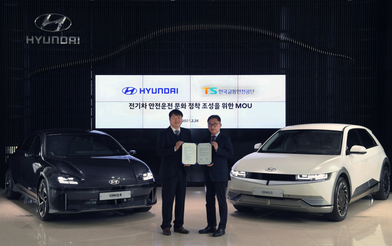 현대차는 28일 서울 강남구 오토웨이 타워에서 한국교통안전공단과 ‘올바른 전기차 운전 문화 정착을 위한 업무협약(MOU)’을 체결했다.