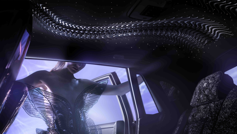 실내 공간에도 롤스로이스 비스포크 컬렉티브와 아이리스 반 헤르펜이 함께 제작한 요소들이 가득하다. 위빙 워터 스타라이트 헤드라이너는 1000장이 넘는 가죽 중 엄선된 무결점 가죽 1장이 사용됐으며, 정밀한 대칭 컷에 나일론 직물로 만든 은색 리퀴드 메탈 질감을 더해 입체적인 느낌을 살렸다.