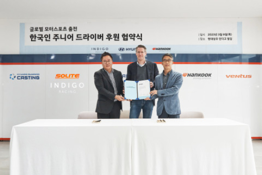 쏠라이트 인디고 레이싱은 9일 현대자동차 및 한국타이어앤테크놀로지와 글로벌 모터스포츠 출전 한국 주니어 드라이버 후원 협약식을 진행했다.
