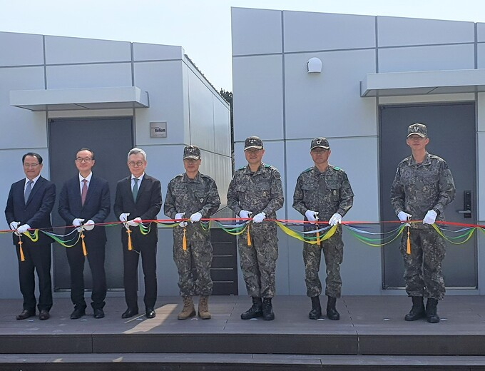 강원도 고성 육군 22사단에서 모듈러형 간부숙소 입주식이 29일 진행됐다. 현대로템 관계자들은 이날 열린 입주식에 참석해 직접 숙소 환경을 점검했다.