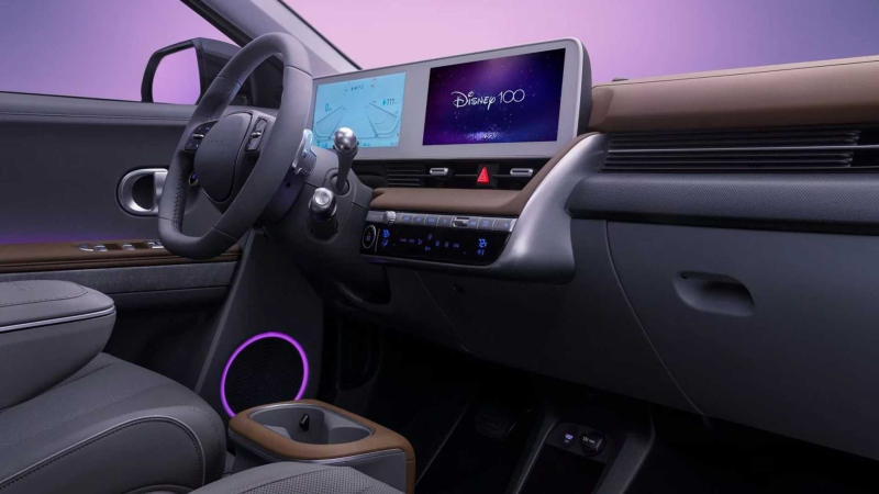 시동을 걸 경우 등장하는 내부 인포테인먼트 화면 애니메이션도 디즈니 테마로 변경했다. 디즈니 시그니처 음악도 들을 수 있다. 또한 헤드레스트와 센터 콘솔, 바닥 매트 등 실내 곳곳에 'Disney 100' 로고를 새겼다.