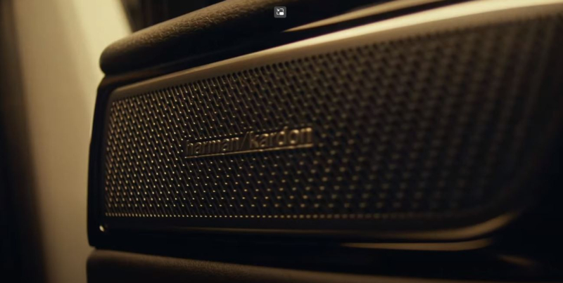 영상은 도어가드부터 시작해 대시보드를 가로지르는 앰비언트 라이트로 시작한다. 아울러 하만카돈(Harman Kardon) 스피커가 들어갔으며, 기어 셀렉터는 스티어링 휠 오른쪽에 배치했다.