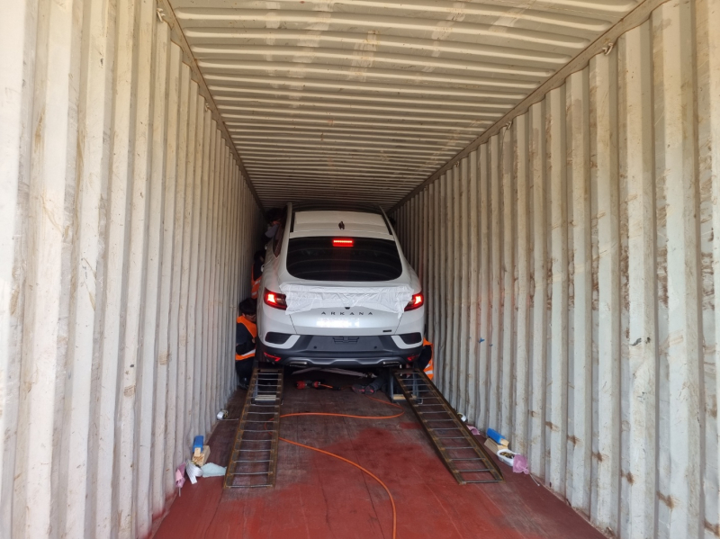 르노코리아는 절충안을 찾았다. 양산용 신차를 운반하는 방식으로는 흔치 않게 컨테이너 한 대에 아르카나 3대를 싣는다. 첫 번째 아르카나가 후진으로 컨테이너에 들어가면, 두 번째 차량은 특수 렉을 통해 21도가량 기울여 탑재된다. 천장과 차량의 거리는 약 15cm에 불과하다. 이어 마지막 차량까지 적재하는데 걸리는 시간은 총 20분. 이렇게 하루에 총 75대의 차량을 보낸다.