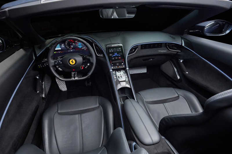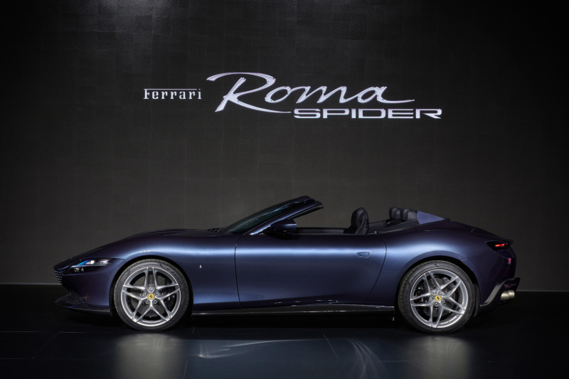 페라리 로마 스파이더는 새로운 달콤한 인생(La Nuova Dolce Vita)이라는 로마의 콘셉트를 확장함으로써, 우아하고 편안한 오픈톱 주행이 가능하도록 설계된 차량이다. 로마의 V8 2+ 콘셉트의 비율과 볼륨, 사양을 계승하면서 54년 만에 프론트 엔진 차량에 소프트톱(soft-top)을 장착했다.