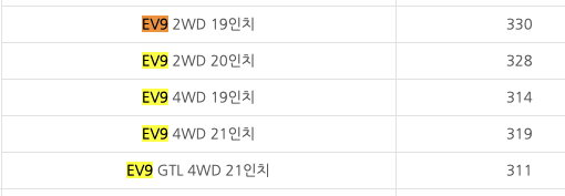 EV9은 트림별로 2WD 모델은 19인치 휠의 경우 330만원, 20인치는 328만원으로 책정됐다.