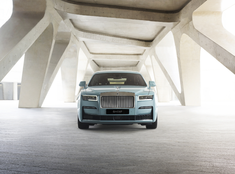 외관에는 영국 사우스 다운스 지역의 고요한 해안을 연상시키는 덕 에그 블루 컬러가 적용됐다. 이음매 없이 매끈하게 이어진 고스트의 외관은 까다롭게 제작된 비스포크 페인트를 위한 완벽한 캔버스 역할을 한다.
