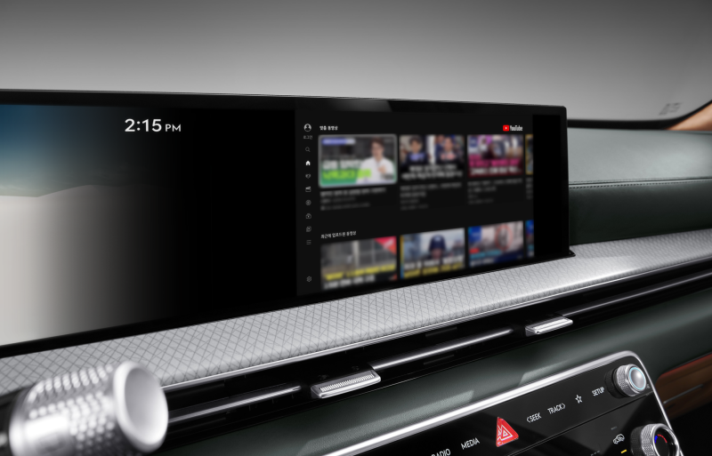 이는 최근 출시된 제네시스 GV80 부분 변경 및 GV80 쿠페 모델에 최초 적용된다. 신형 GV80의 내비게이션 화면은 물론 후석 스마트 엔터테인먼트 시스템을 통해서 시청이 가능하다. 특히 탑승객의 취향에 따라 각 좌석별 인포테인먼트 시스템을 통해 각기 다른 유튜브 콘텐츠를 즐길 수 있다.
