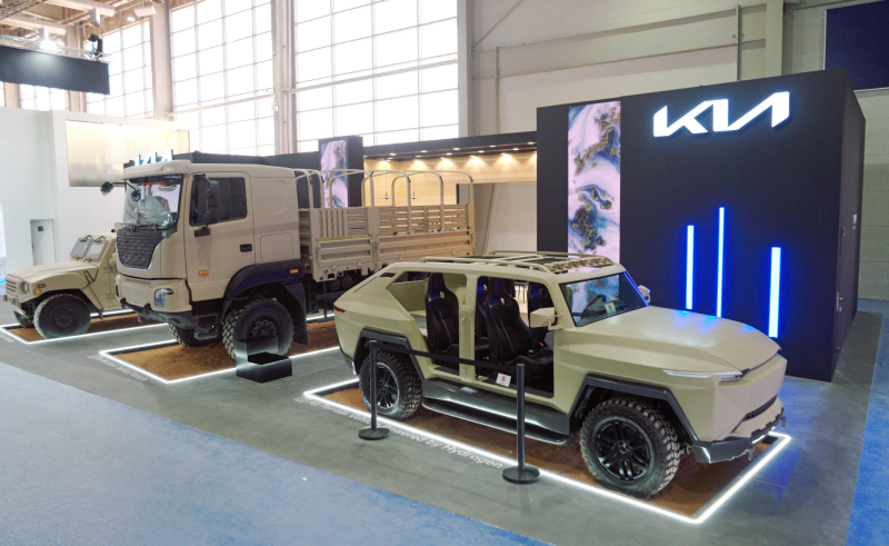 기아는 '평화를 지키는 모든 이들의 안전한 이동을 위한 모빌리티'를 주제로, 중형표준차량을 해외 최초로 공개한다. 중형표준차량은 1m 깊이 하천을 신속하게 통과할 수 있는 기동성과 최대 16명까지 탑승이 가능한 수송 능력을 갖추고 있으며, 다양한 형태로 맞춤 제작이 가능하다.
