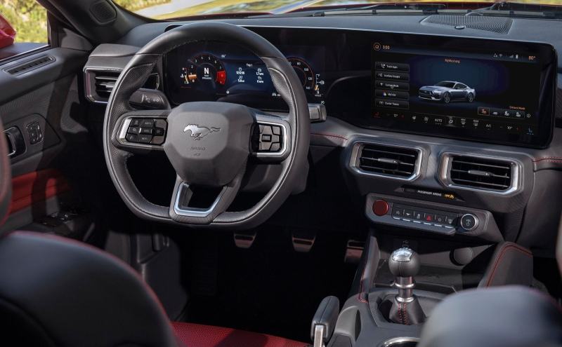 실내는 전투기에서 영감을 받은 12.4인치 및 13.2인치 곡면 디스플레이가 보다 직관적인 고객 경험을 실현했다. 여기에 머스탱 배기음을 즐기는 운전자들을 위해 키 포브를 통해 자동차 엔진을 원격으로 회전시킬 수 있는 리모트 레브 기능 등이 적용됐다.