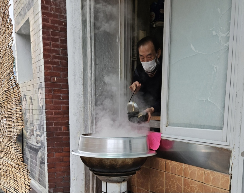 밥 따로 국 따로. 삼일따로국밥은 함께 나오는 반찬을 무시할 수 없다. 고등어 구이, 호박전, 오이 무침이 경상도 북부지방의 맛을 고스란히 담아내고, 무짠지, 감자 조림, 양상추 샐러드가 구색을 거든다. 푹 끓인 국은 이웃집 잔칫날 마당 귀퉁이에서 아지매가 떠 주던 국과 꼭 닮았다. 구수하면서도 중간을 지키는 간이 입안에서 고향을 느끼게 해 준다. 밥 한 술, 국 두 숟가락을 뜬다. 천천히 국 속을 들여다보면 선지, 무, 콩나물, 대파가 도드라지지 않고 연대하여 전통의 맛을 풍긴다. 이게 무슨 맛일까? 표현이 어려울 즈음 공기밥 절반을 넣고 말아먹으면, 어릴 때 먹던 국밥 맛을 상기시킨다. 한 가지 차이라면 이 집은 고사리가 들어 있지 않다는 점이다. 고사리의 씹히는 맛을 뺀 건 국물의 순수성을 유지하기 위한 비법일까, 원가의 문제일까, 고민하다 생각을 접었다. 맛에 아무런 지장이 없었기 때문이다.