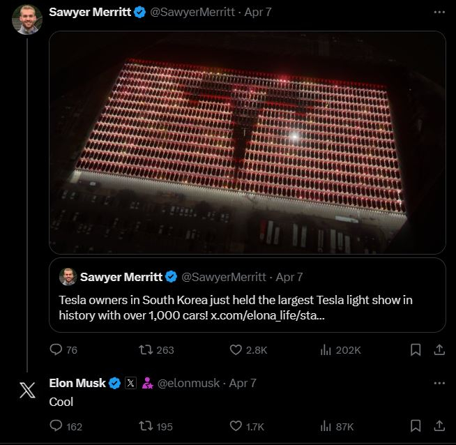 이번 라이트쇼는 국내 유튜버 한테타(한국에서 테슬라 타기) 등 테슬라 오너들이 자발적으로 주도했다. 테슬라코리아의 별도 후원은 없는 것으로 알려졌다.