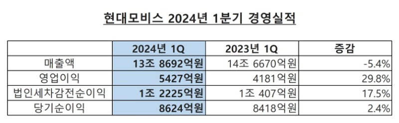 현대모비스가 1분기 경영 실적을 26일 발표했다.