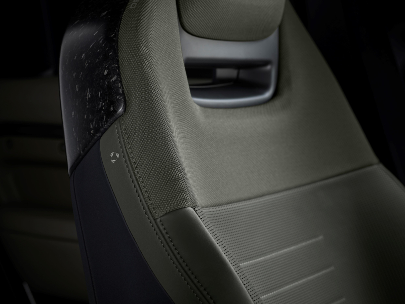 페로 그린 컬러는 올 뉴 디펜더 OCTA 에디션 원 모델에만 독점적으로 제공되며, 에디션 원에는 정교하게 가공한 카본 파이버 디테일도 포함된다. 재활용 원료를 사용한 이 독특한 마감은 디펜더 보닛 스크립트, 펜더 벤트 서라운드 및 보닛 벤트 서라운드, 그리고 앞좌석 시트백과 실내 센터 콘솔 트림에 사용된다.