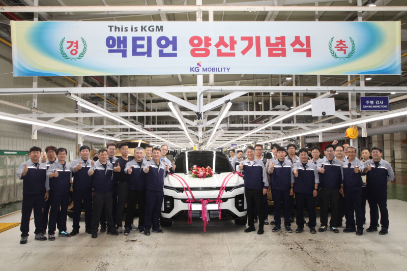 KGM이 액티언의 고객 출고를 앞두고 12일 평택공장 조립 1라인에서 양산 기념행사를 가졌다.이번 행사에는 KGM 곽재선 회장과 박장호 대표이사를 비롯해 생산을 책임지는 관련 임직원들이 참석해 완벽한 품질의 제품 생산을 위한 결의를 다졌다.