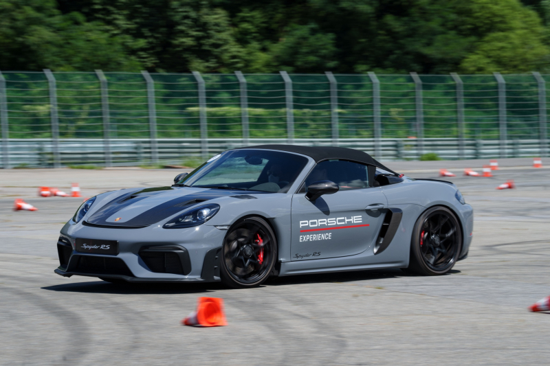 '슬라럼' 세션은 718 스파이더 RS로 간단한 짐카나 코스를 공략한다. 718 스파이더 RS는 멈춰 선 상태에서도 역동적인 분위기를 연출한다. 곳곳에 배치된 카본 및 에어로 파츠가 그 매력을 배가시킨다. 전반적인 스티어링 휠 조작에 대한 반응은 날카롭고 직관적이다. 연속된 방향 전환에도 탄력적이고 민첩한 움직임을 보여준다. 다만, 가속 페달은 생각보다 더 예민하다. 운전자가 랩 타임에 욕심을 부릴수록, 차는 울컥이며 투정을 부린다. 부드럽지만 정확하게 페달을 밟아야 했다. 마냥 세 번뿐인 기회가 아쉽다.