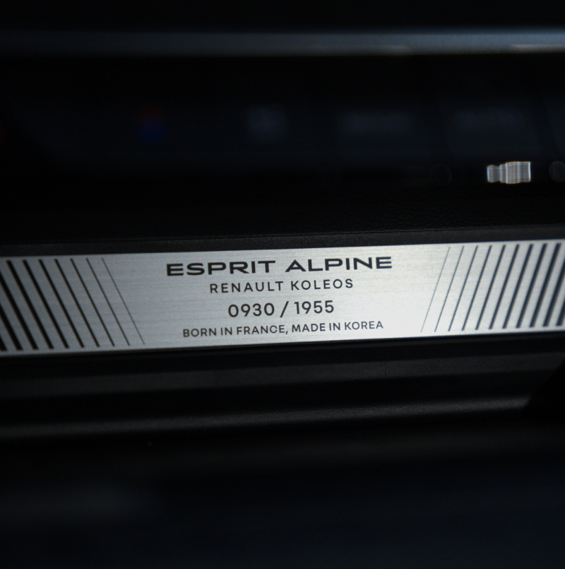 르노코리아는 그랑 콜레오스 에스프리 알핀 구매 고객 중 선착순 1955명에게 전용 플레이트와 플로우 매트, 그리고 전담팀 스페셜 케어 혜택 등이 적용된 '1955 스페셜 에디션'을 인도하고 있다. 플레이트는 차량 내부 센터페시아 버튼 하단에 부착되며, 플로우 매트는 에스프리 알핀의 로고가 각인되어 브랜드 헤리티지를 더한다.