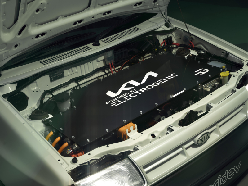 프라이드 EV는 기아 영국법인과 전기차 개조 전문업체 일렉트로제닉(Electrogenic)과의 협업으로 탄생했다.