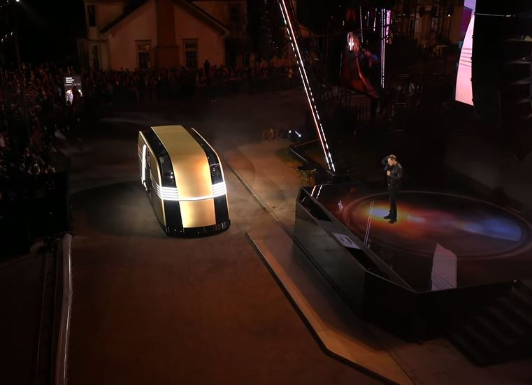 한편, 테슬라는 이날 자율주행이 가능한 20인승 밴 '로보 밴'을 함께 공개했다. 로보 밴의 문은 양 옆으로 열리며 내부에는 좌석을 마주보게 배치했다.