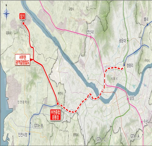 서부권 광역급행철도는 경기 김포 장기에서 인천 검단, 계양, 부천 대장을 거쳐 서울 청량리까지 총 49km를 연결하는 사업이다. 김포 장기역부터 부천종합운동장역까지 21km는 신설되며, 부천종합운동장역부터 청량리역까지는 GTX-B 노선 선로를 공용한다. 이번 사업이 완료되면 김포 장기역부터 서울 용산역까지 약 25분만에 주파할 수 있다.